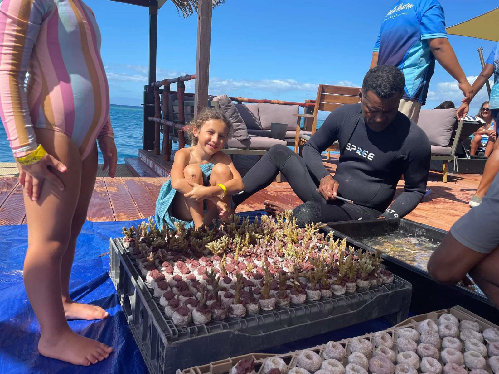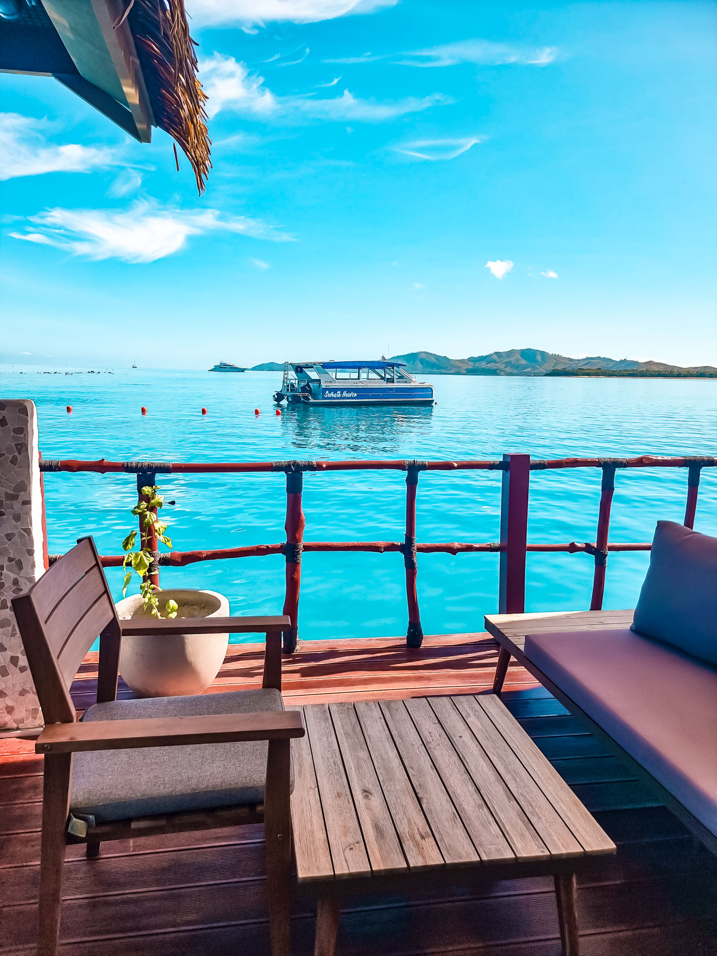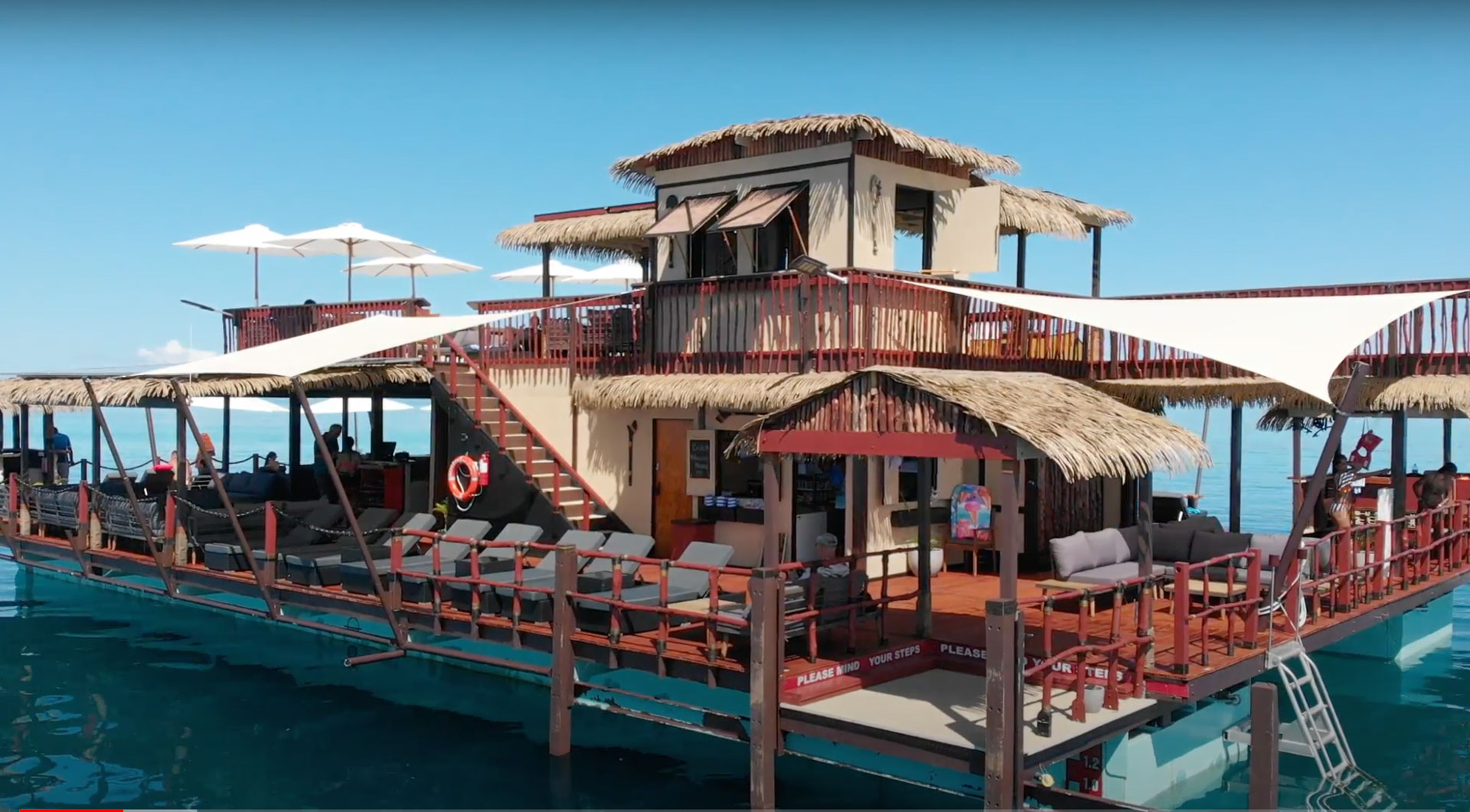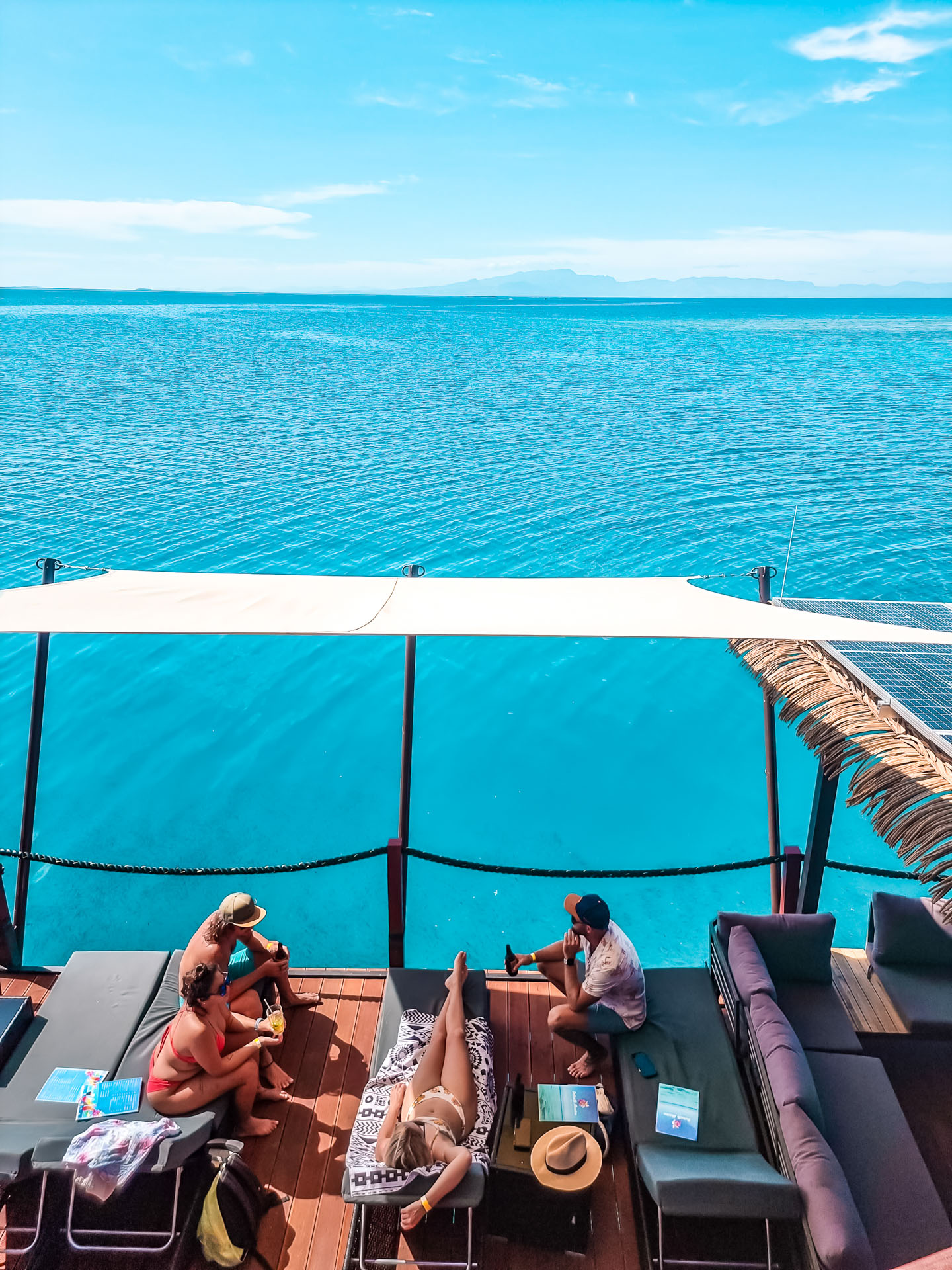Experience our little piece of heaven What do you do on Seventh Heaven? As little as possible, of course! Spend your day with your family and friends on Fiji’s premium floating day club listening to local and international music, getting a massage, enjoying our exceptional food (including authentic wood-fired pizzas) and gazing out into the crystal clear Fijian waters. For the thrill seekers among our guests, you can take the ‘Leap of Faith’ right into the warm ocean and enjoy exploring the local water and abundant marine life at your leisure