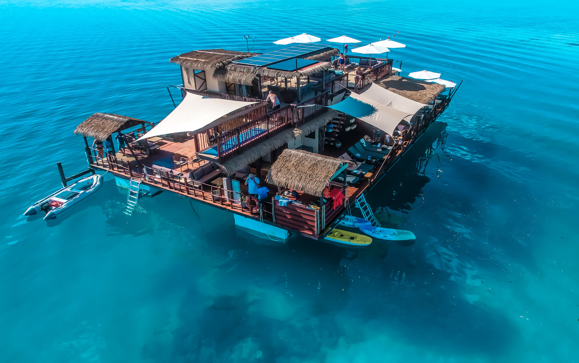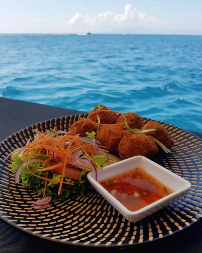 Stretch out in the sun with a cocktail or ice-cold beer in hand in a location that can only be described as ‘unreal’. Towel off the refreshing salty water after a dip before indulging in freshly prepared meals straight from our kitchen in the middle of the ocean made with love and with local ingredients!